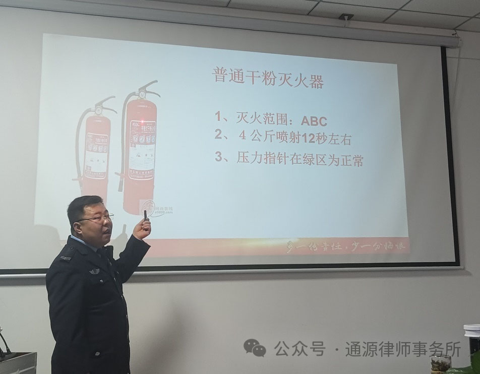 2023年1月4日上午,甘肃通源律师事务所特邀请定西市亿安消防宣传中心李华健教官来我所开展消防安全知识宣讲活动,以进一步增强我所律师的消防安全意识,提高应急自救能力。
