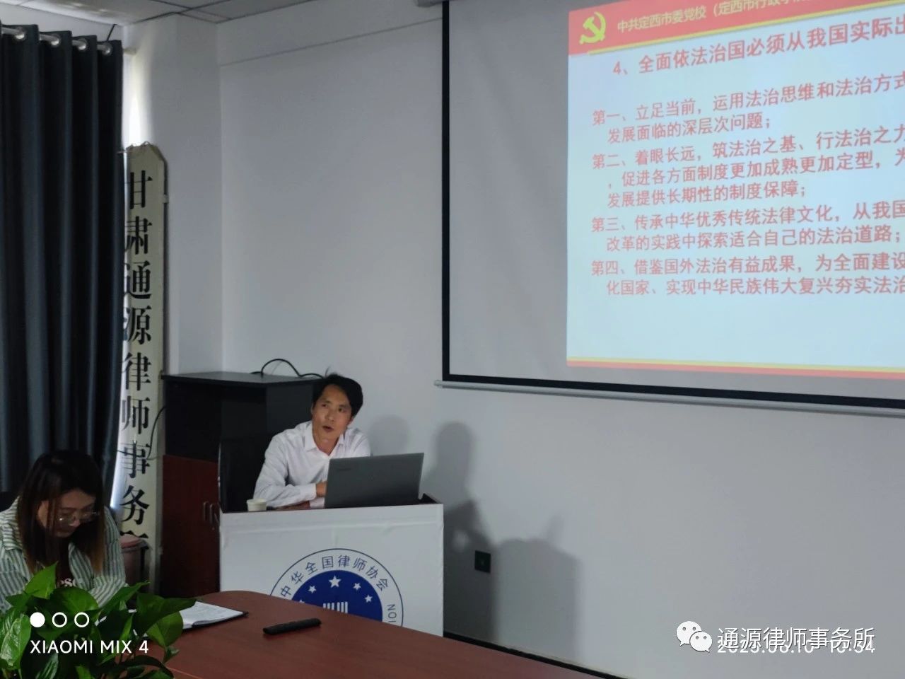 2023年6月10日,为深入学习贯彻习近平新时代中国特色社会主义思想,全面贯彻落实党的二十大精神,深刻把握习近平法治思想的核心要义与实践要求,进一步提升全所律师运用法治思维和法治方式推动工作的能力水平,甘肃通源律师事务所特邀请中共定西市委党校(定西市行政学院)副教授、文化和哲学教研室主任何斌,围绕“习近平法治思想”做专题讲座。