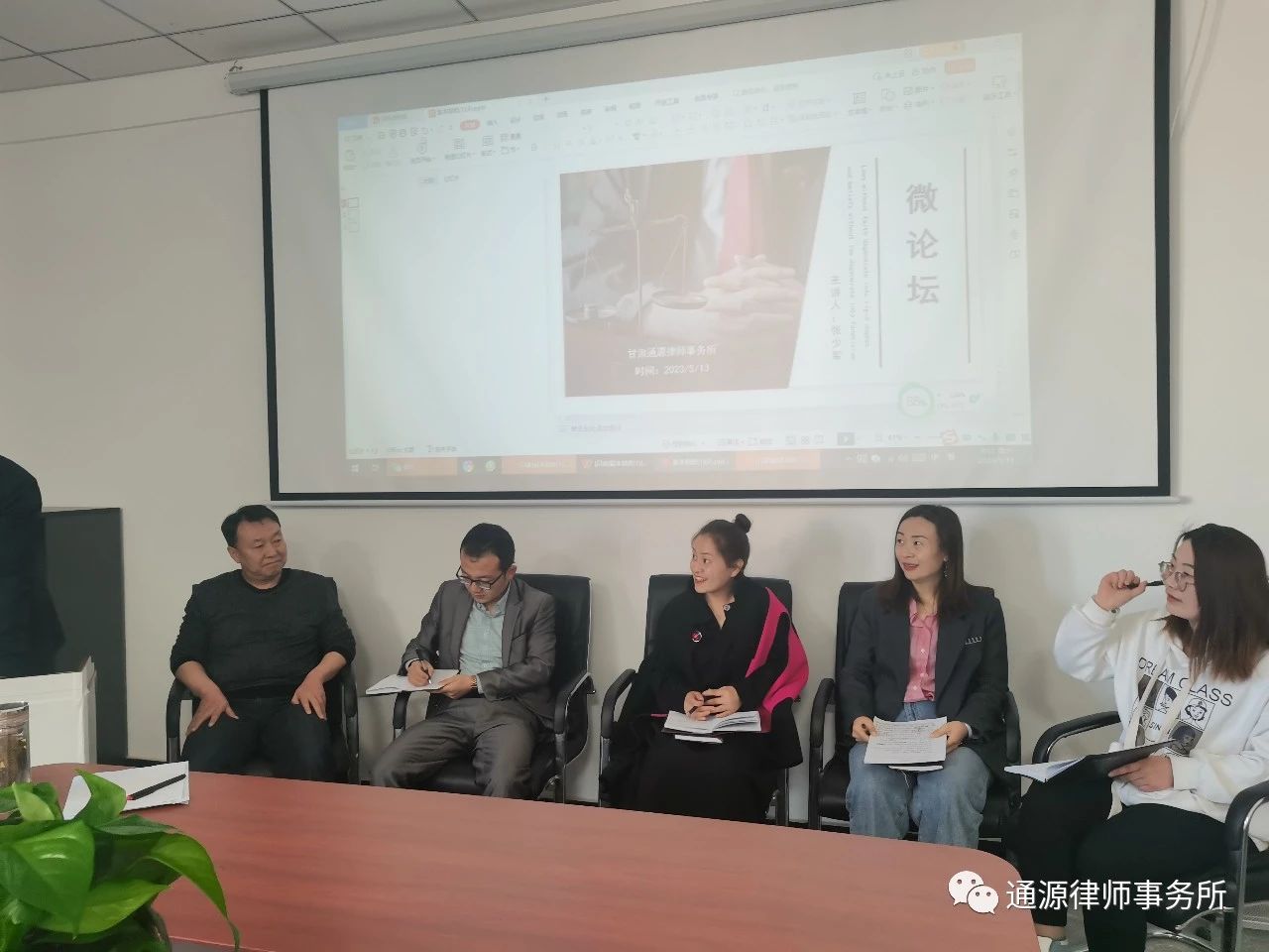 近期,甘肃通源律师事务所举办第三次【通源·开讲啦】学习活动,本次开讲第一次以微论坛的方式进行,本所主任高建忠律师主持会议,微论坛主讲人:张少军律师,特邀嘉宾:王亚鹏律师,厚亚玲律师,郑彩霞律师,董雨星律师。