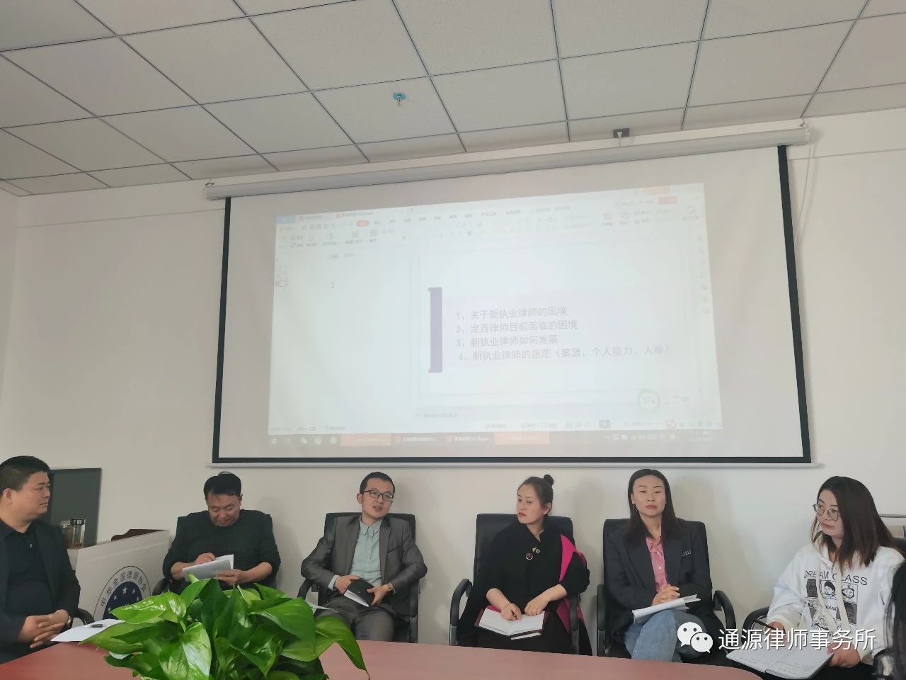 张少军作为本所优秀合伙人律师,为我们的新执业律师进行了答疑解惑,他提到执业之初,大家面临迷茫困惑是正常的,要正视这个问题,有耐心跟毅力去解决这个问题。张律师还向我们介绍了自己的从业经历,从他的亲身经历中我们也能清晰感受到律师行业的变迁,他也分析了近几年定西律师的发展现状,律师人数猛增,大家面临的挑战越来越大,激烈的竞争是法律服务市场发展到一定阶段的客观现象,律师执业服务在本质上是律师通过专业素质向社会提供的一种服务,因此律师执业必然受到竞争环境的影响,无论是从专业能力还是从业务能力上,我们都应该应社会发展的需要努力提升,所谓“狭路相逢勇者胜”,我们既要有接受挑战的勇气,也要有必胜的决心。张律师还给了我们新执业律师几点温馨的建议:1、保护好自己;2、坚持学习;3、提高情商;4、高调做事,低调做人;5、天道酬勤、地道酬善、业道酬精、人道酬诚。