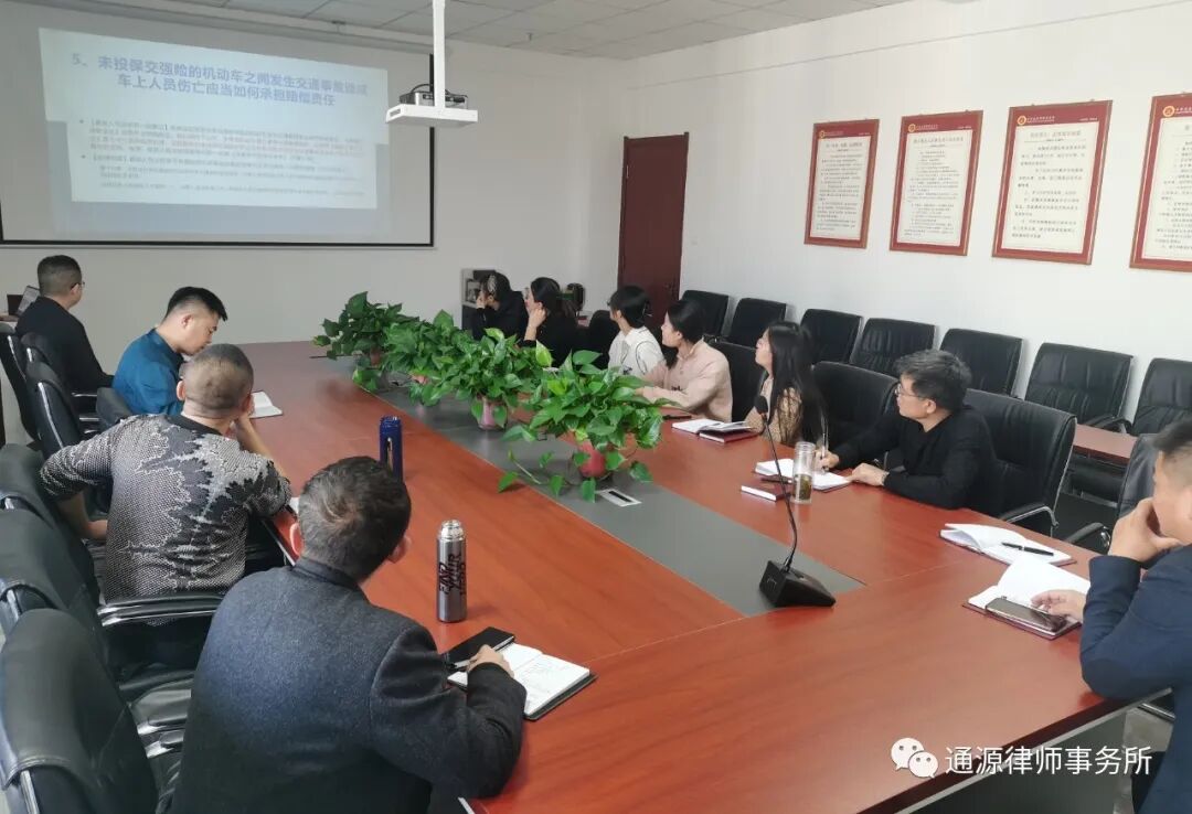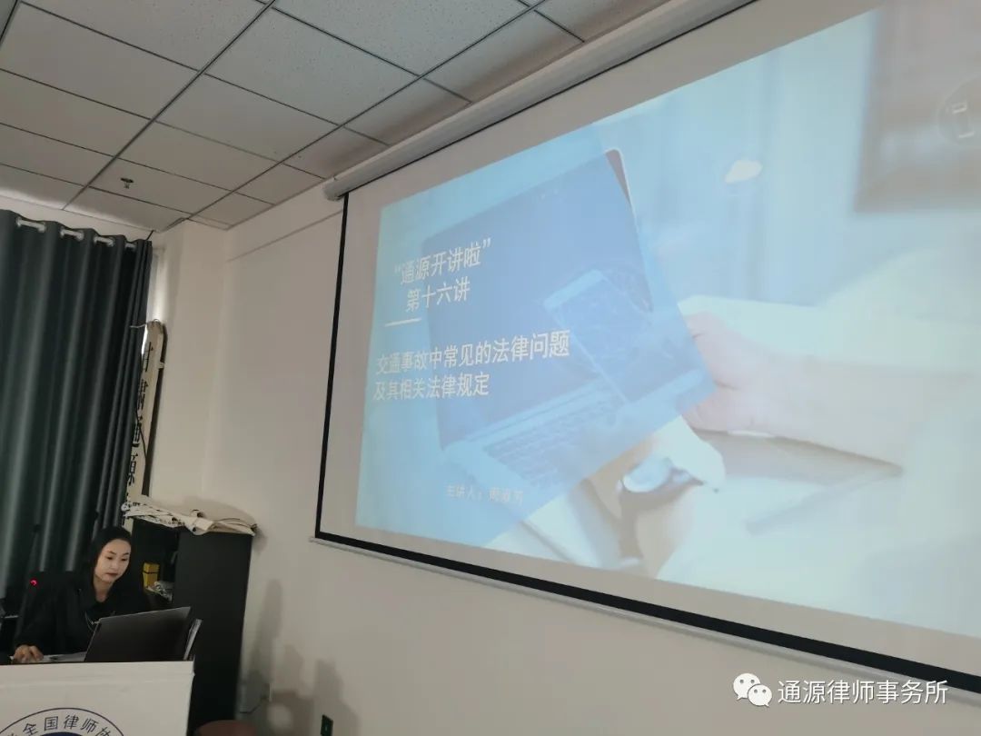 2023年11月25日上午,甘肃通源律师事务所举办第十六期【通源·开讲啦】讲学活动,本次讲学由甘肃通源律师事务所专职律师周淑芳,以“交通事故中常见的法律问题及其相关法律规定”为专题进行讲座。会议由我所主任高建忠主持,律所全员参加学习。